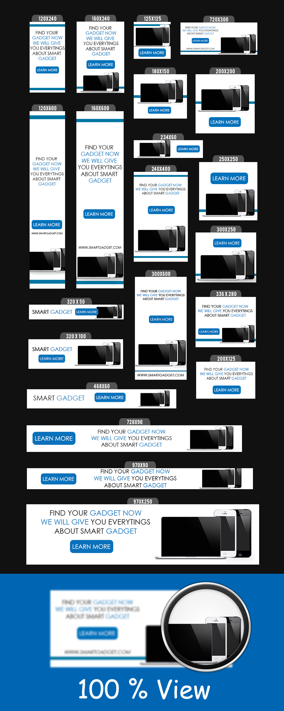 Collection of banner ads templates that you can use to super charge your advertising campaign. In total you will receive 21 different banner ads templates in various standard size.